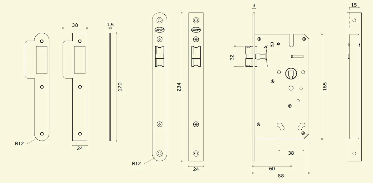 Mortise lock passage type (60mm)